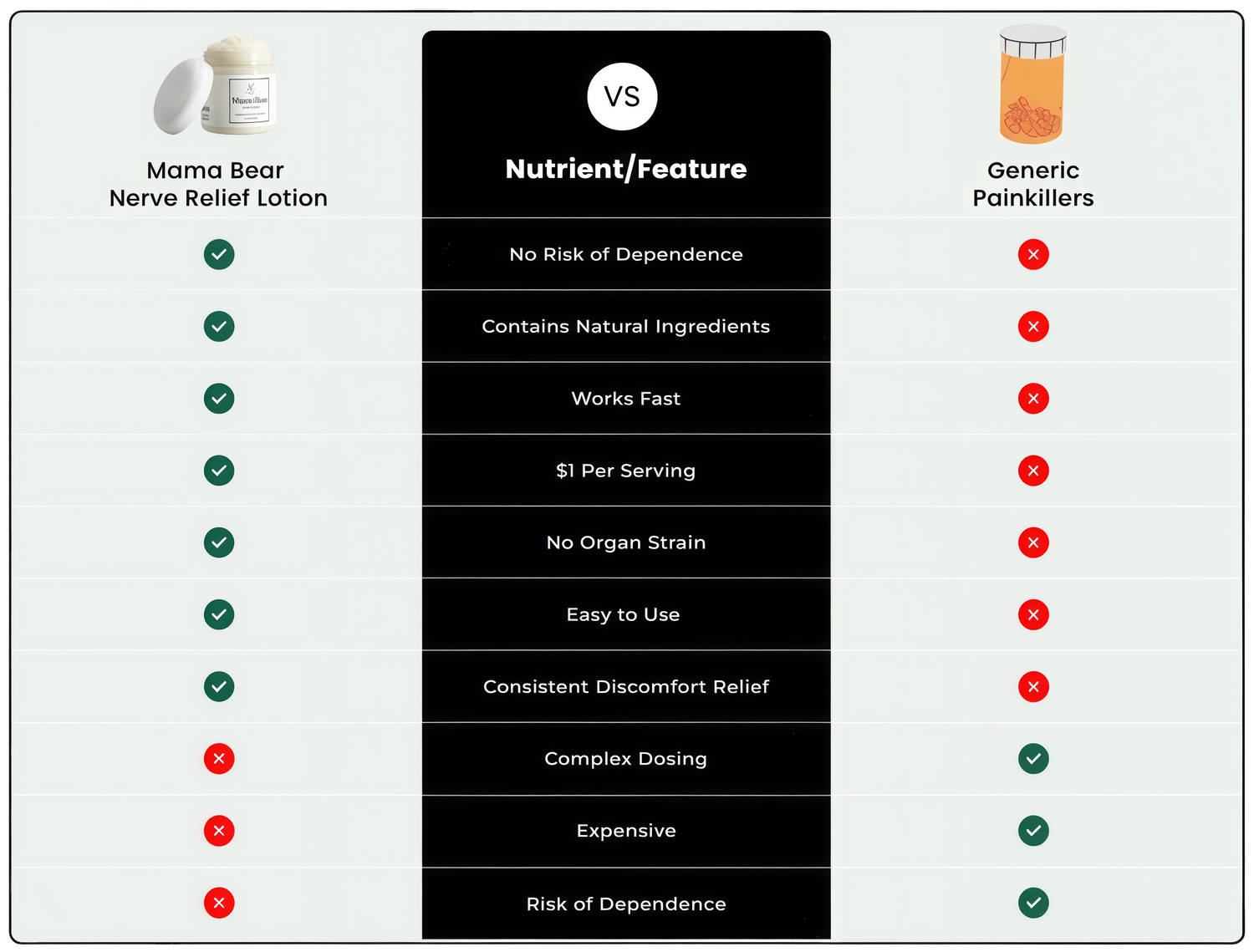 With Mama Bear, you’re nourishing your nerves with a comprehensive blend of essential ingredients proven to help your continuous nerve discomfort.